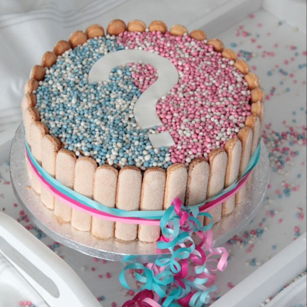 Je kunt ook een taart bestellen voor een gender reveal feestje.