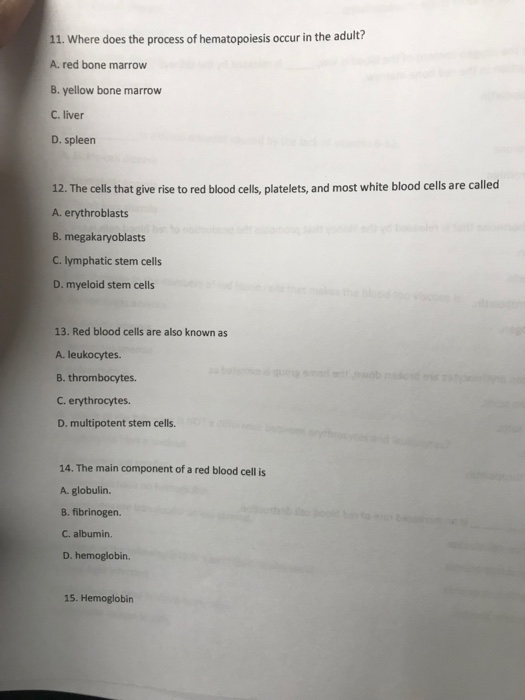 Solved 11 Where Does The Process Of Hematopoiesis Occur Chegg Com